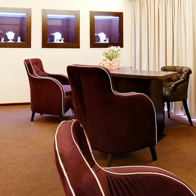 Актуальні колекції прикрас, що випускаються в світ нашим ювелірним домом, представлені в наших шоурумах, де всі відвідувачі мають можливість ознайомитися і вибрати для себе прикрасу з декількох тисяч представлених. У затишній, невимушеній атмосфері, ви зможете не тільки неспішно приміряти на собі золоті прикраси що сподобалися найбільше, а й обговорити деталі створення абсолютно нового ювелірного твору за вашими індивідуальними ескізами.
